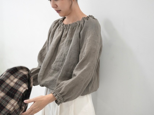上質リネン100% グレージュ❤︎ゴムブラウジング長袖トップス No.371