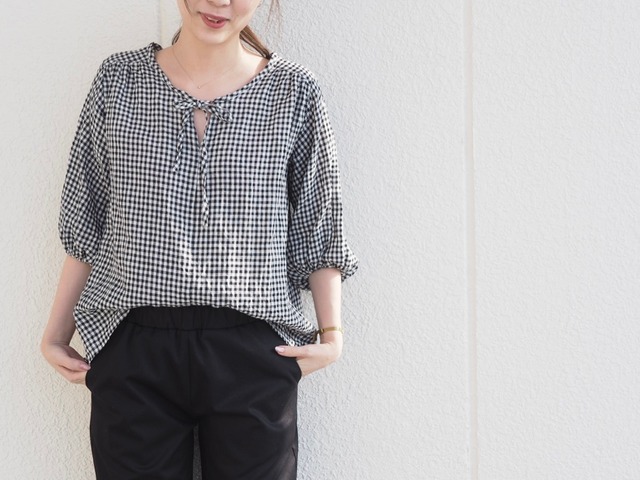 春夏になると欲しいリネンのブラウス。 ギンガムチェックでお作りしました。 コットンのギンガムチェックはよくありますが、こちらはリネン100%。 何がいいってこのくたっとした表情とさらっとした肌触り。 あと、ほのかなツヤ。 これらはリネンならでは。 リネンは涼しいので真夏にも。 デニムはもちろん。 いろんなボトムスと合わせてたくさん使ってくださいね。 ・同じ生地の半袖トップス ************************* ◇モデルの身長は: 1~6枚目 168cm 7枚目〜 160cm ☆サイズ 身丈 約69cm バスト 約110cm アームホール 約44cm ◇色:ブラック×オフホワイト ************************* ◇素材 リネン100% 水洗い可 Mauve pink❤ Made in FUKUOKA