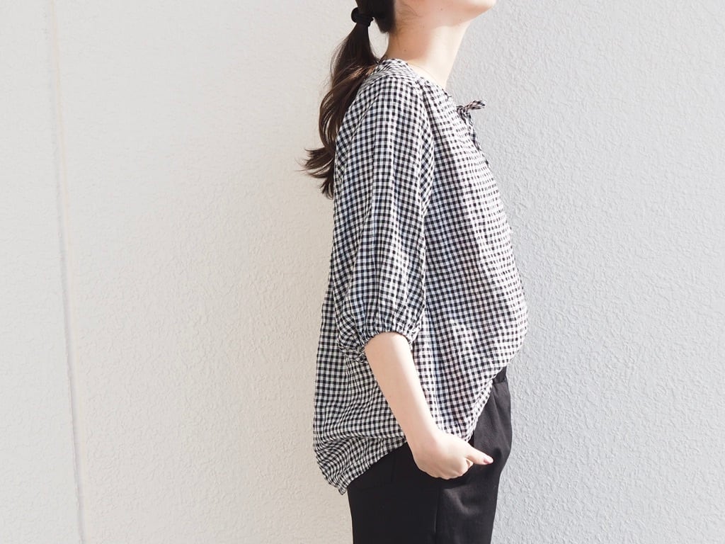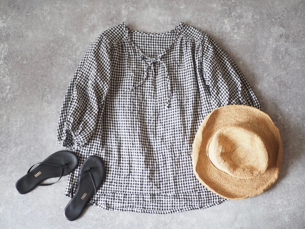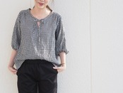 Mauvepink 1番人気 ❤️ リネン100%のギンガムチェックブラウス No.152