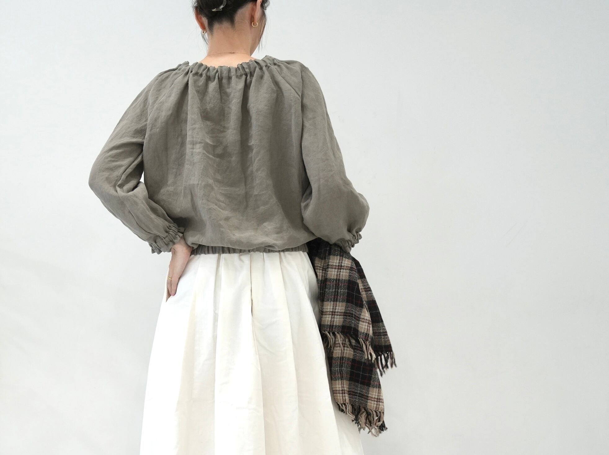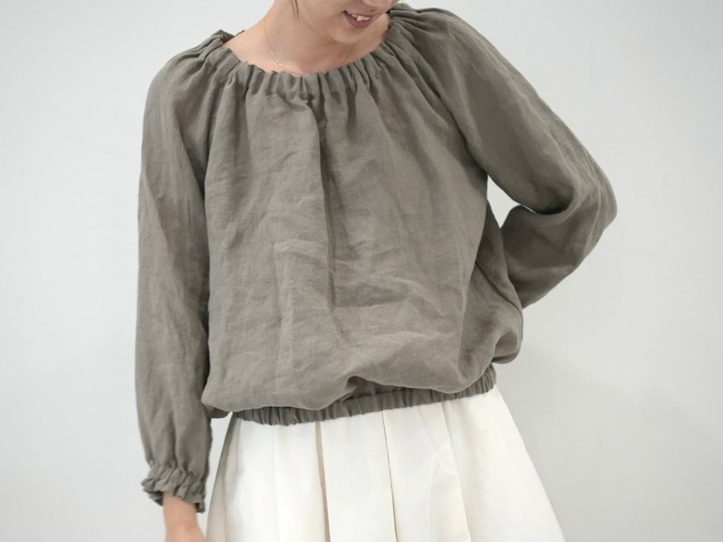 上質リネン100% グレージュ❤︎ゴムブラウジング長袖トップス No.371
