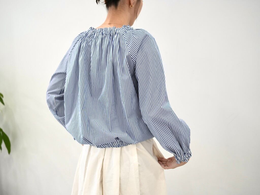 爽やかブルー×ホワイト❤︎コットン100% ブラウジング長袖ブラウス No.366