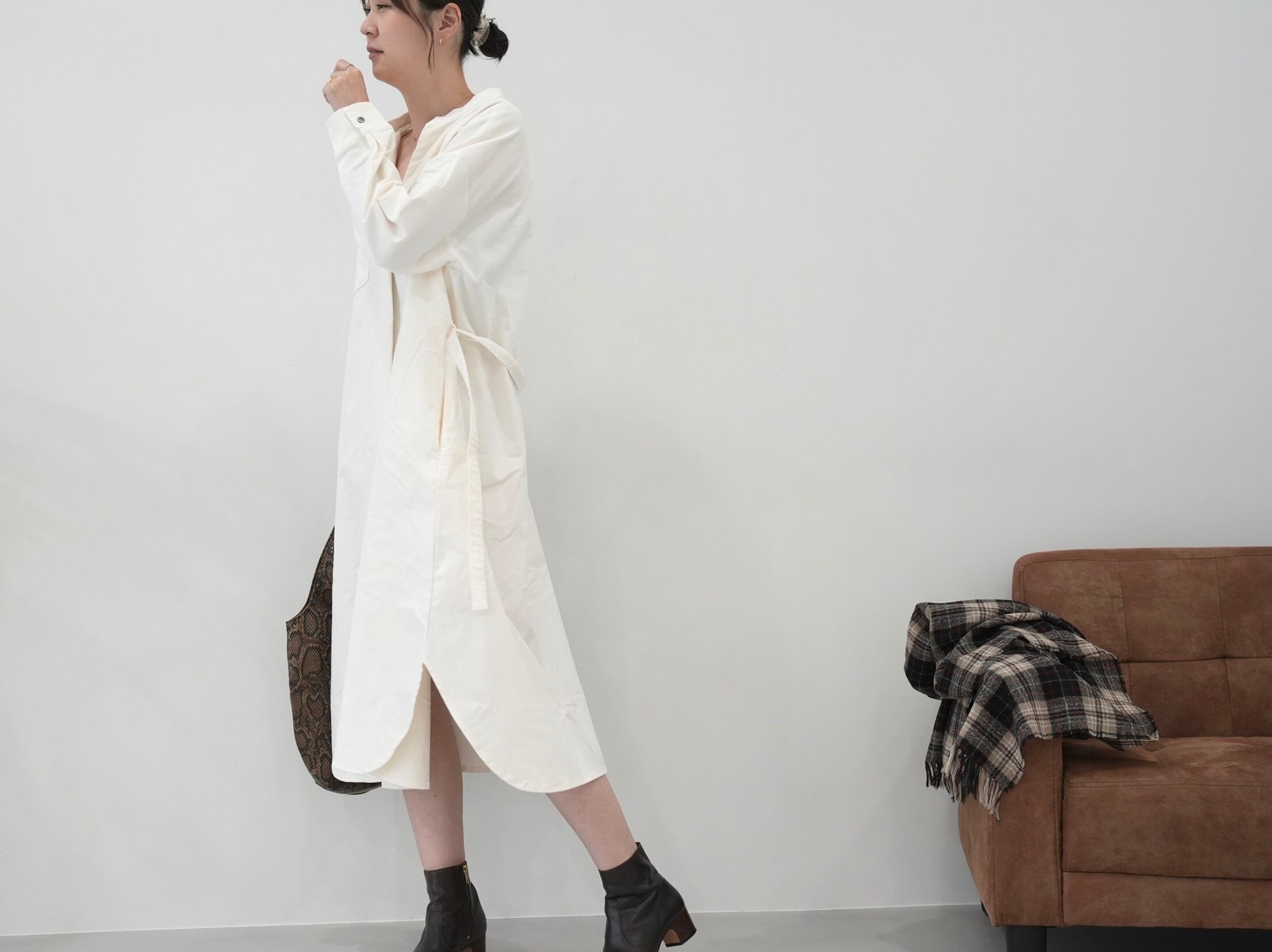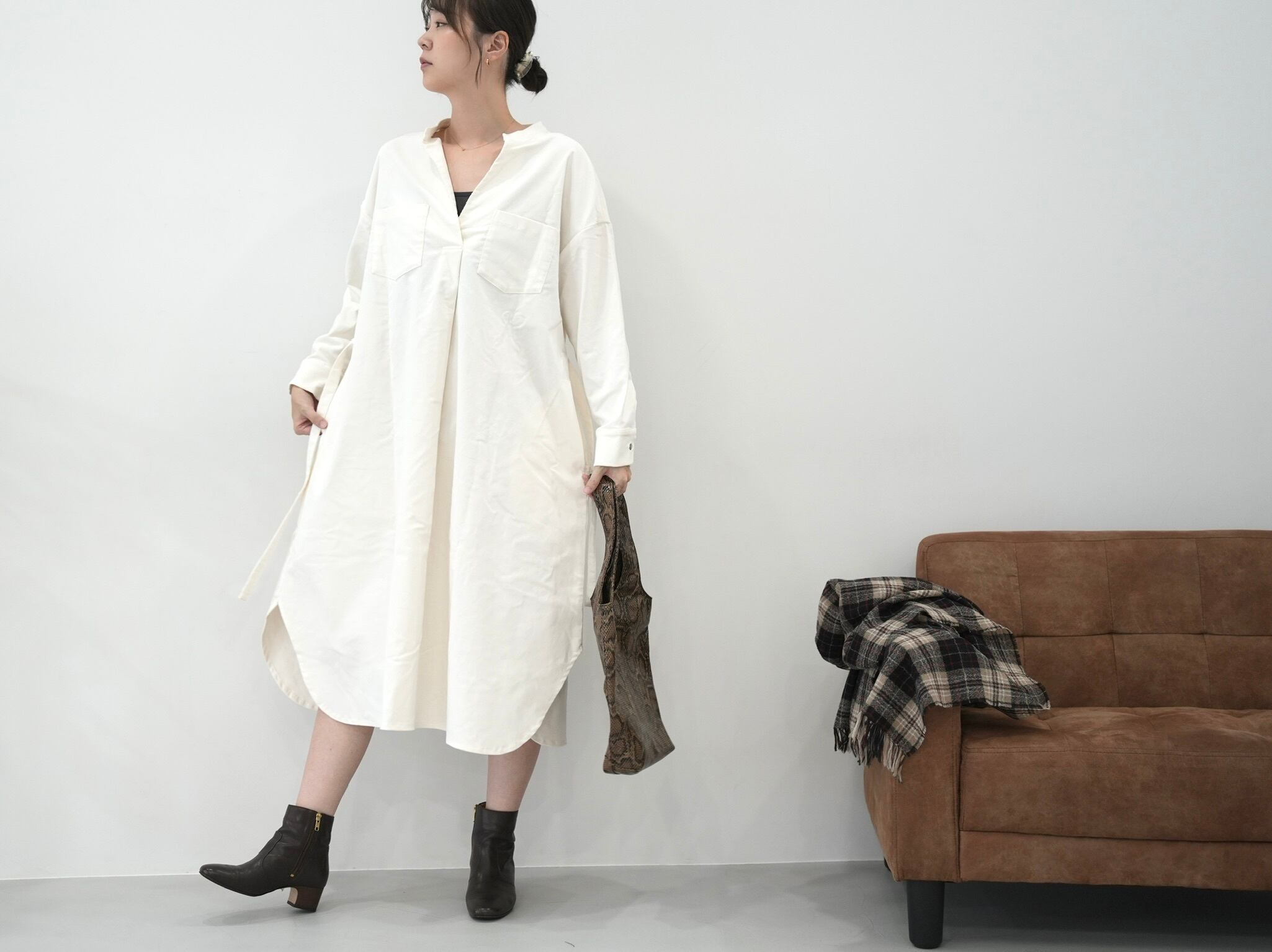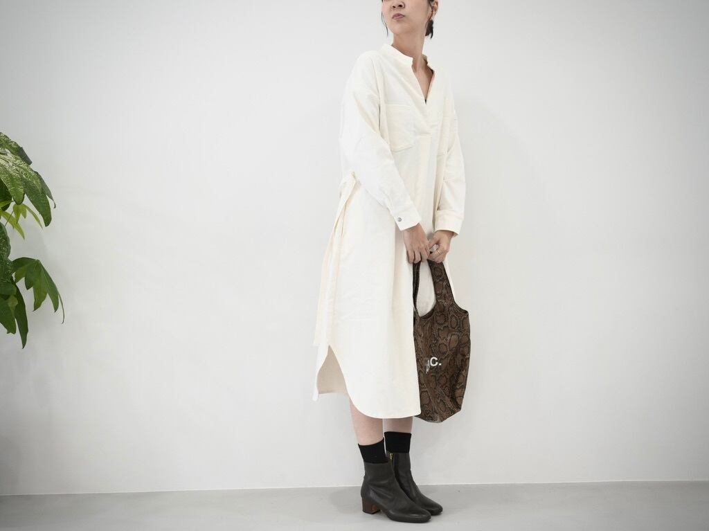 コットン100%の細うねコーデュロイを使用した、上品なホワイトワンピースです。