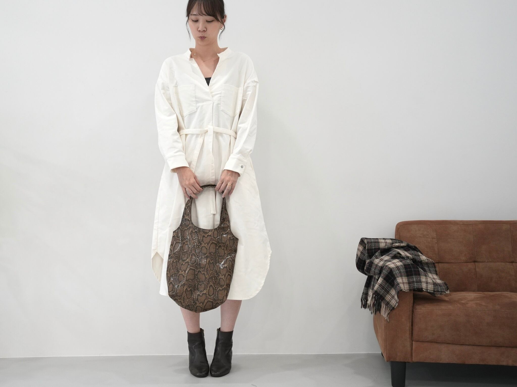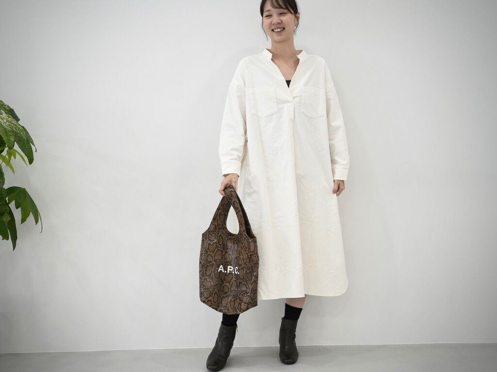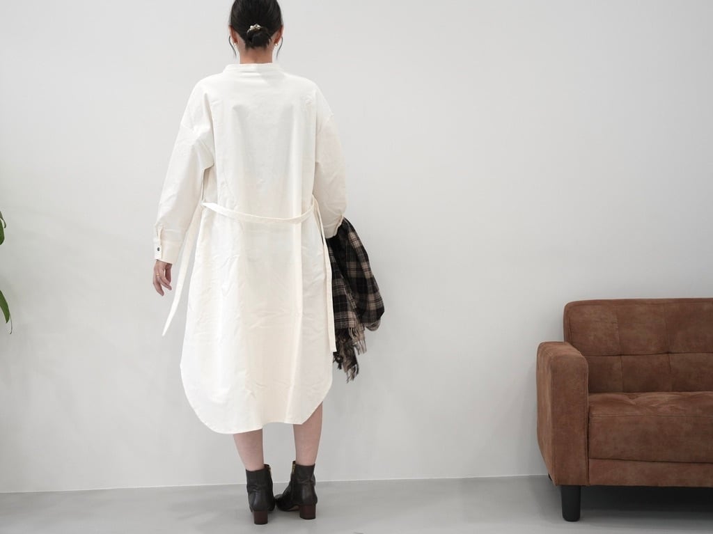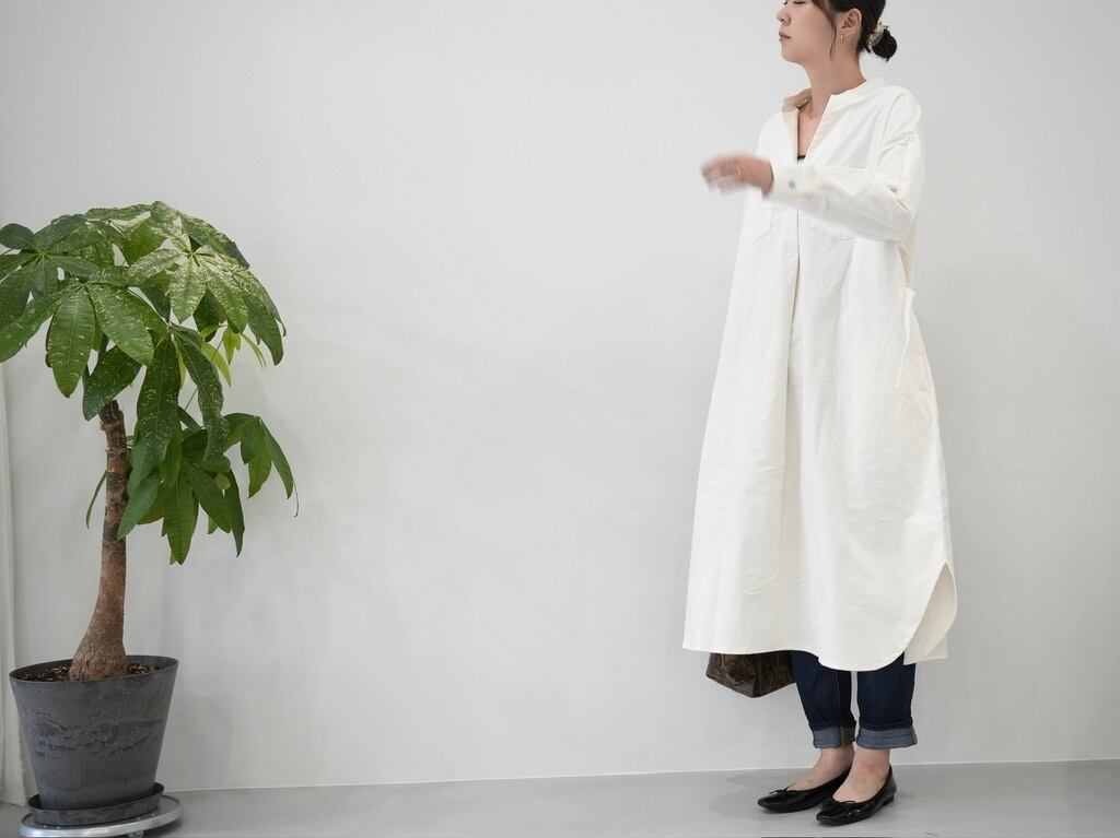 コットン100%の細うねコーデュロイを使用した、上品なホワイトワンピースです。