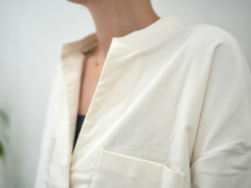 程よい厚みとストレッチ性を備えた細うねコーデュロイは動きやすく、季節を問わず重ね着も楽しめる素材。