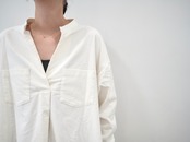 シャープな印象を与えるVネックが顔まわりをすっきり見せ、ゆったりとした身幅でリラックス感のある着心地に仕上げています。