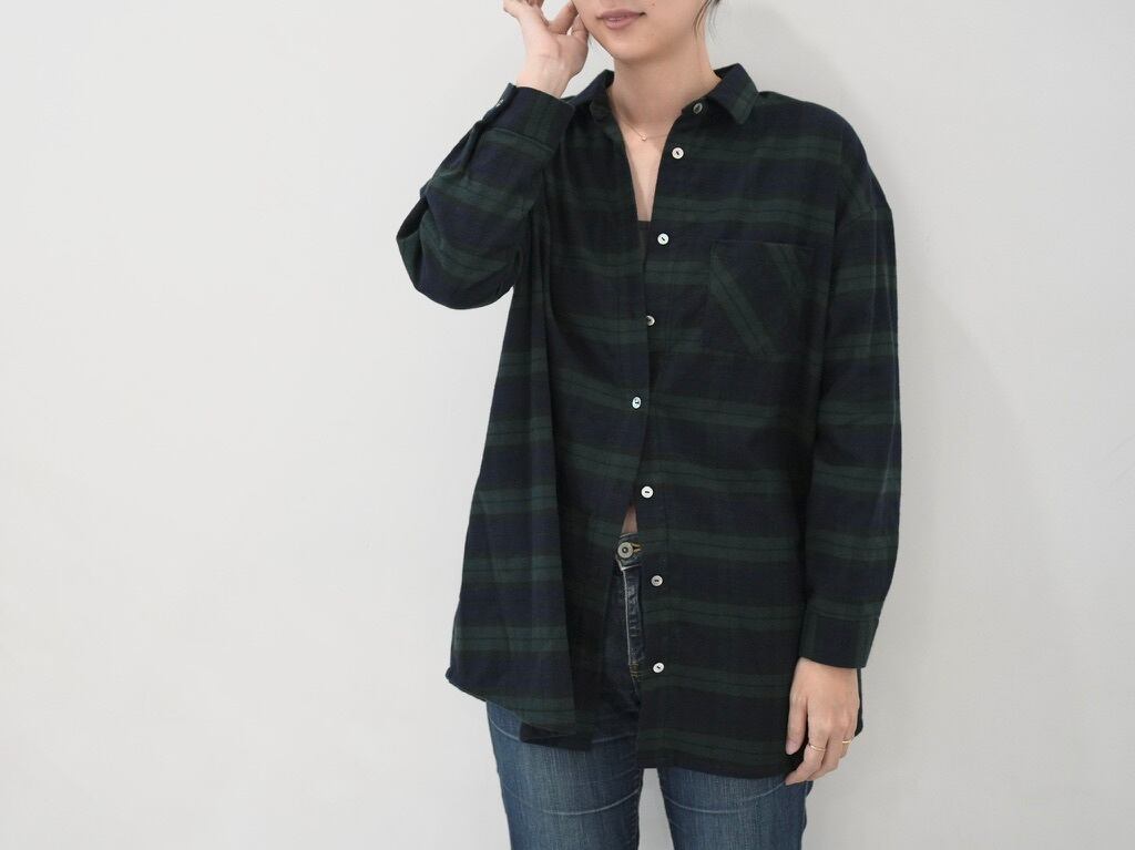 暖かネル素材・ブラックウォッチロングシャツ No.369