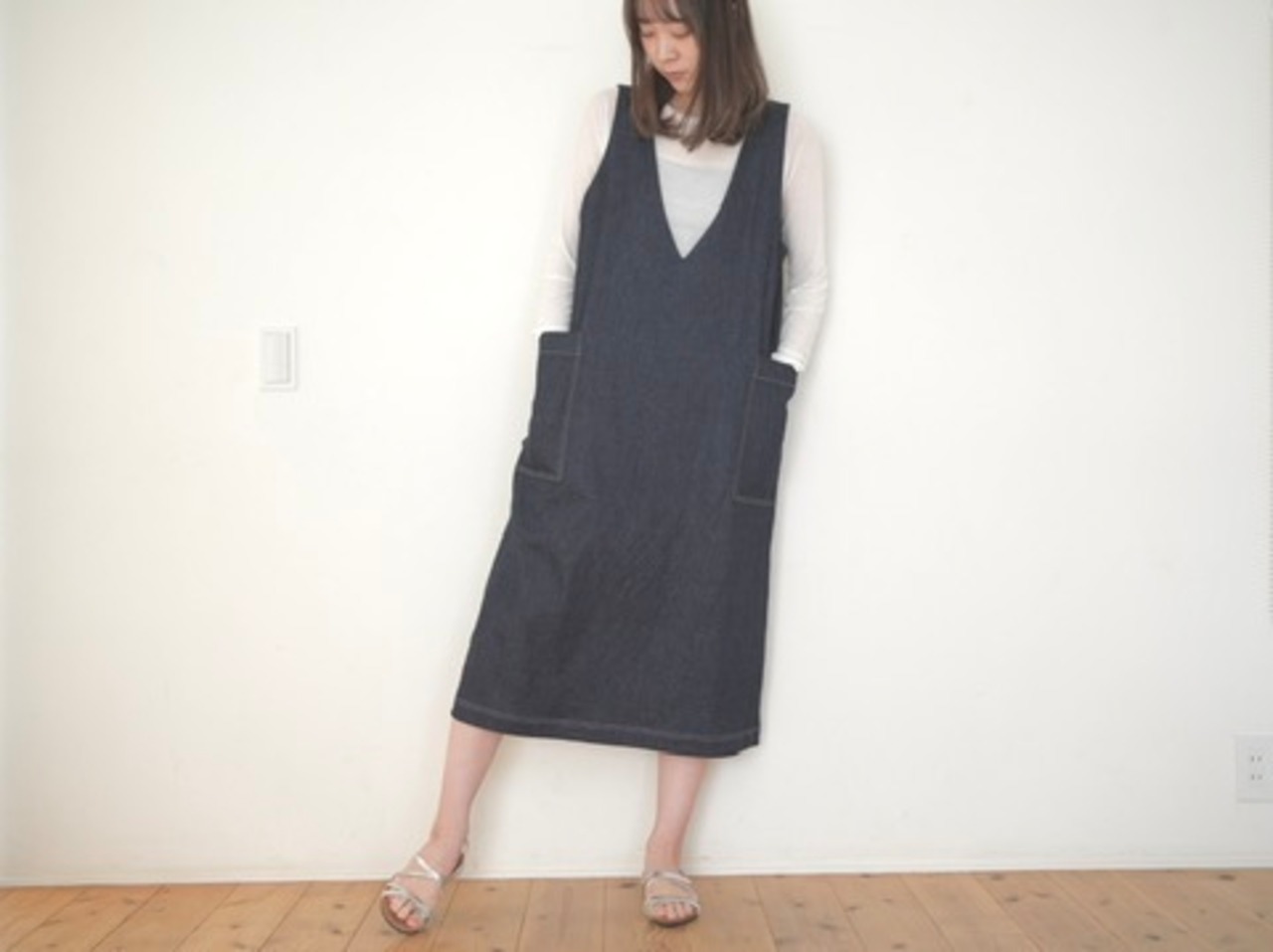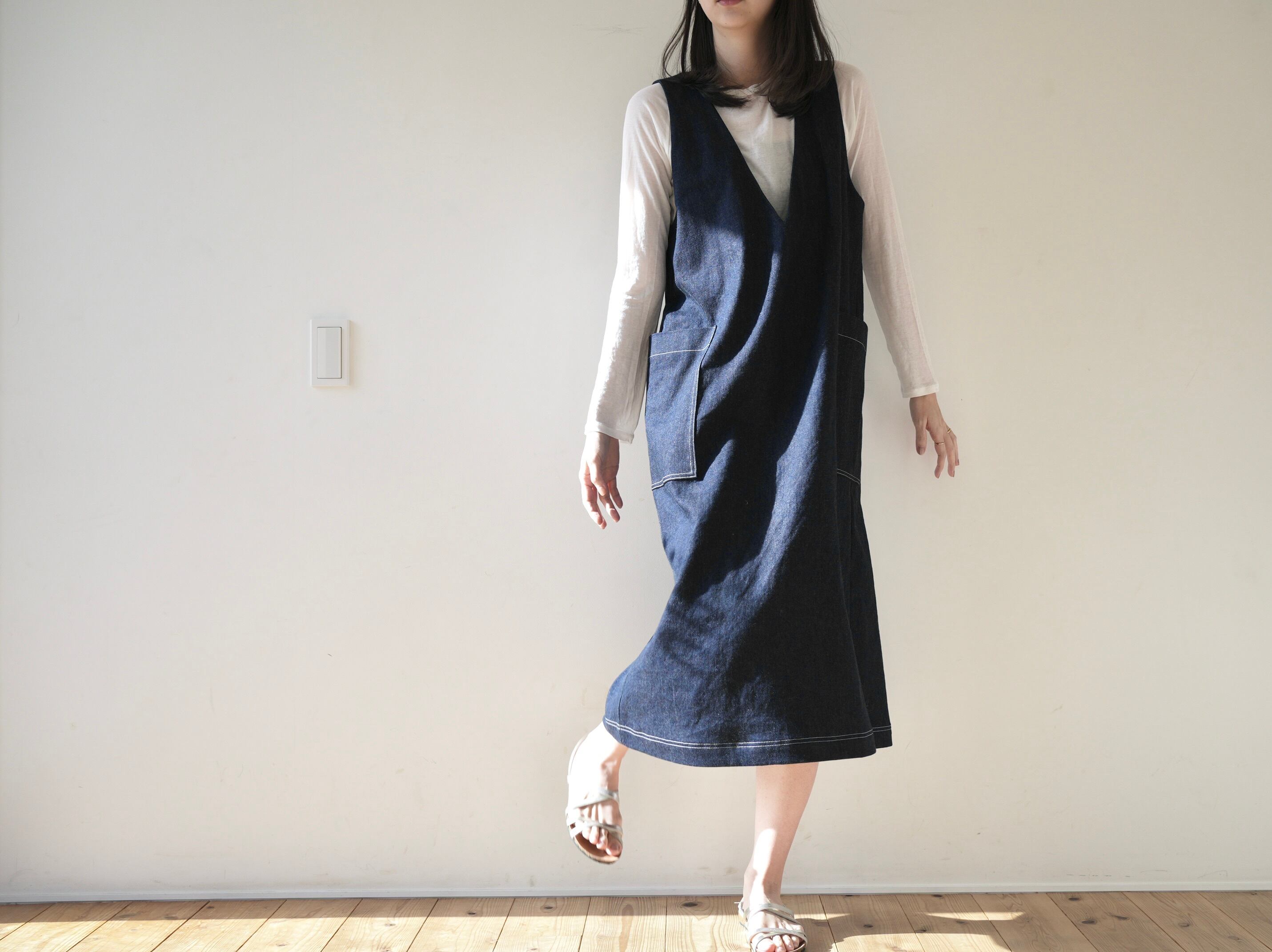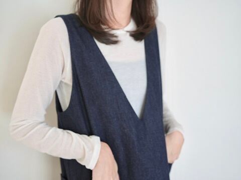 深いVネックとまっすぐな縦のラインが