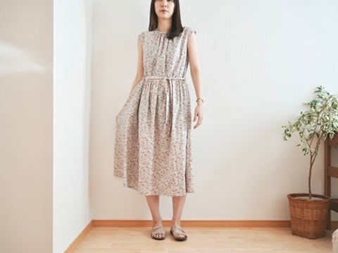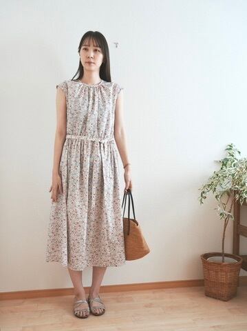 どこか懐かしい花柄のコットンフレンチワンピース ピンク No.377