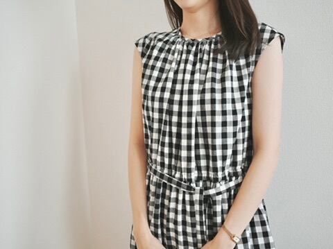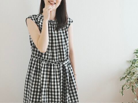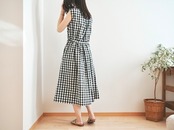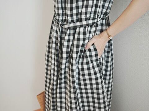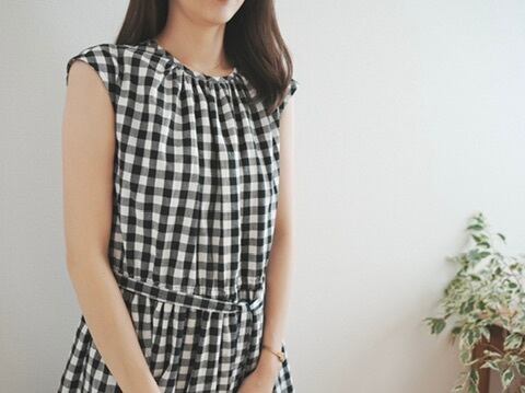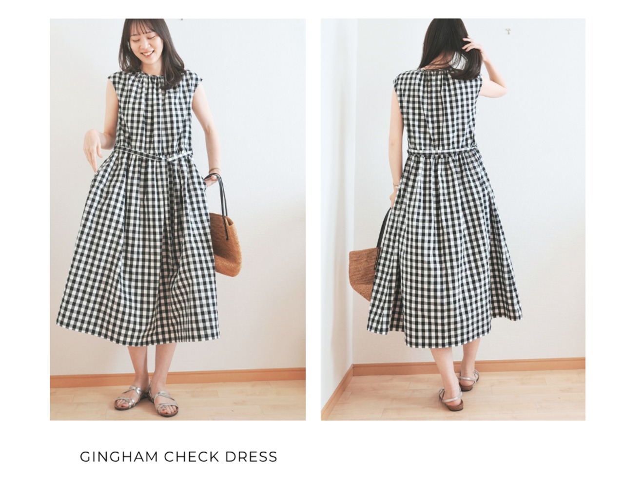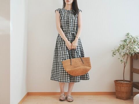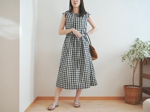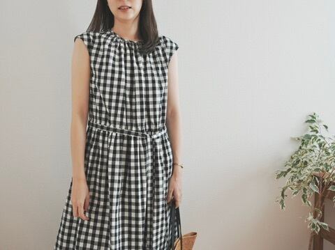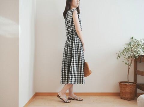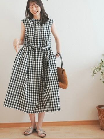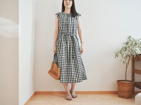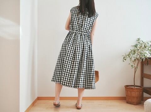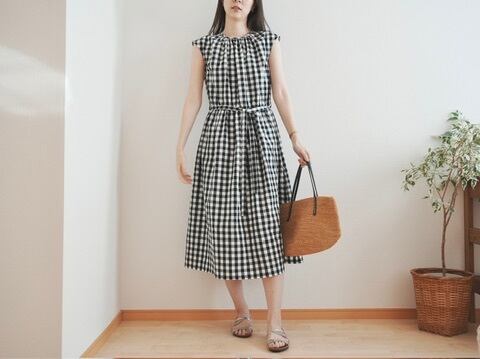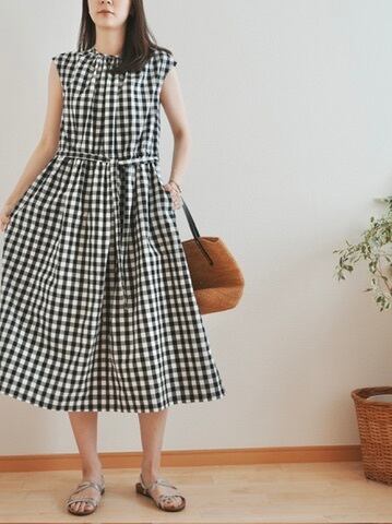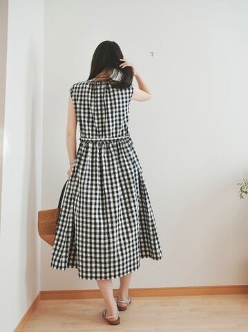 大人かわいい ブラックギンガムのコットンワンピース No.387