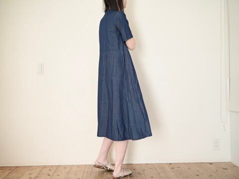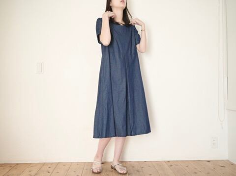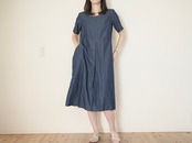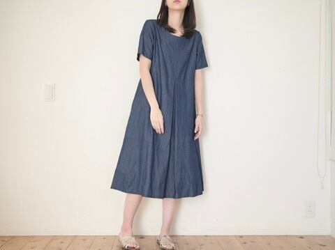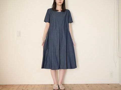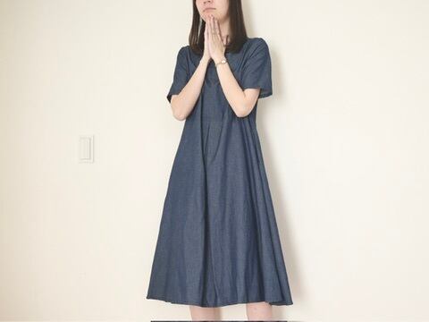 半袖切り替えフレアワンピ デニム No.383