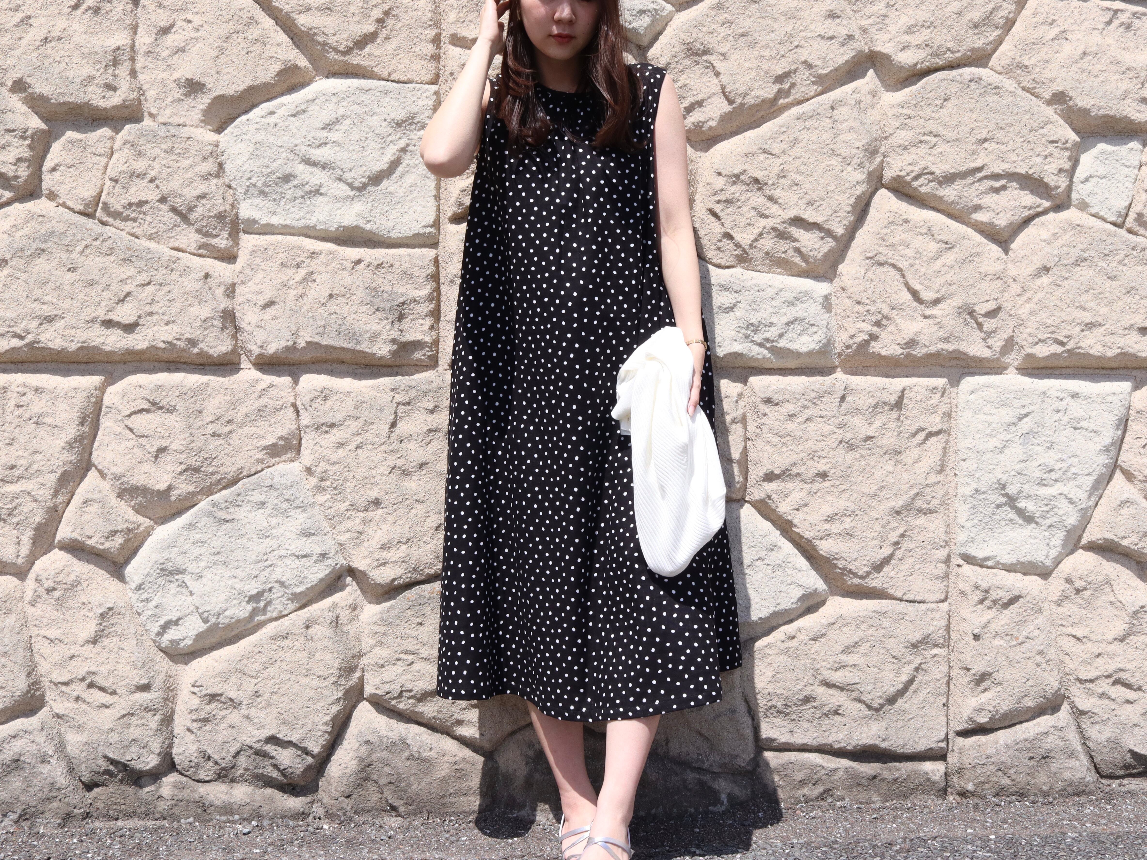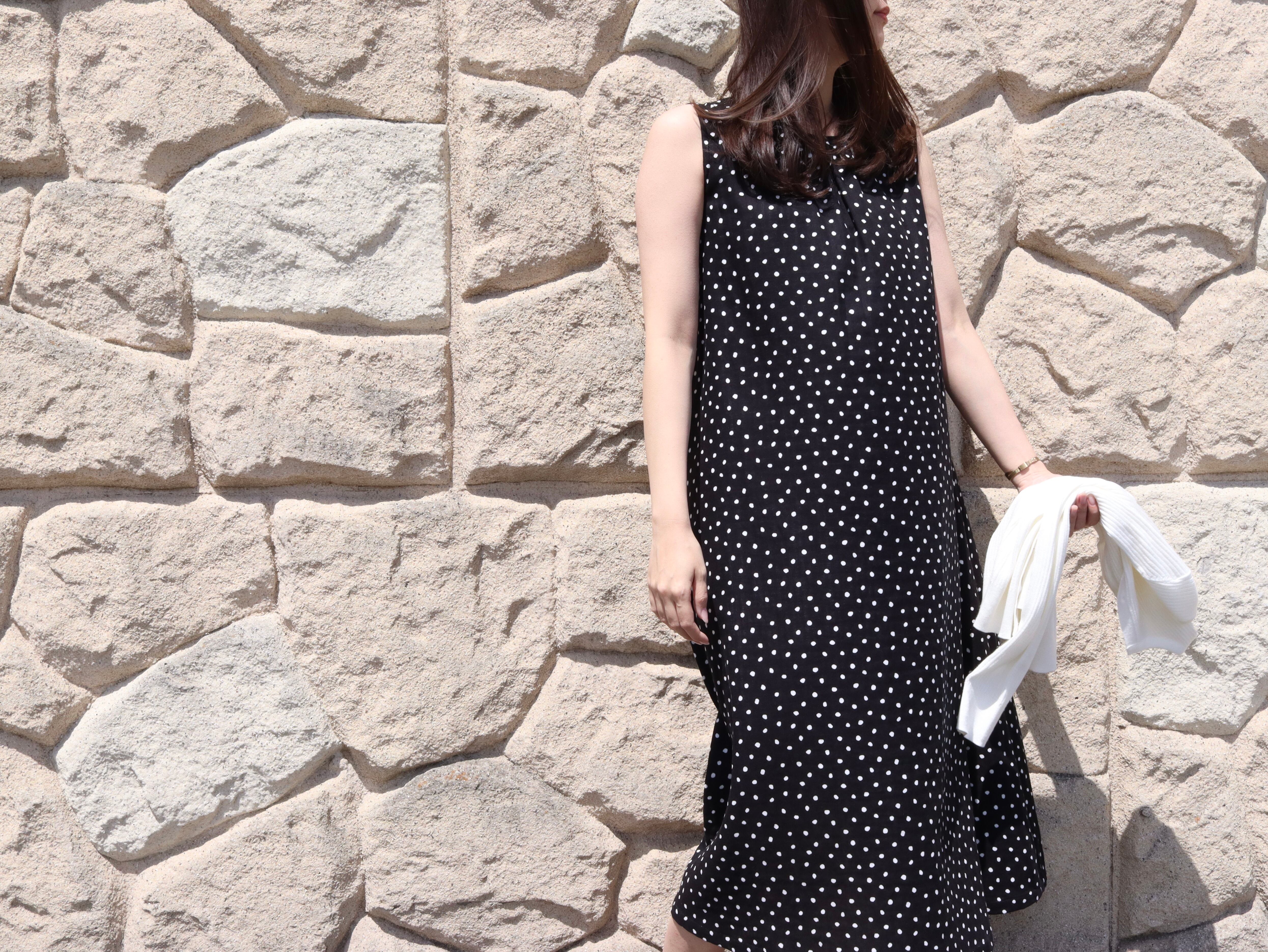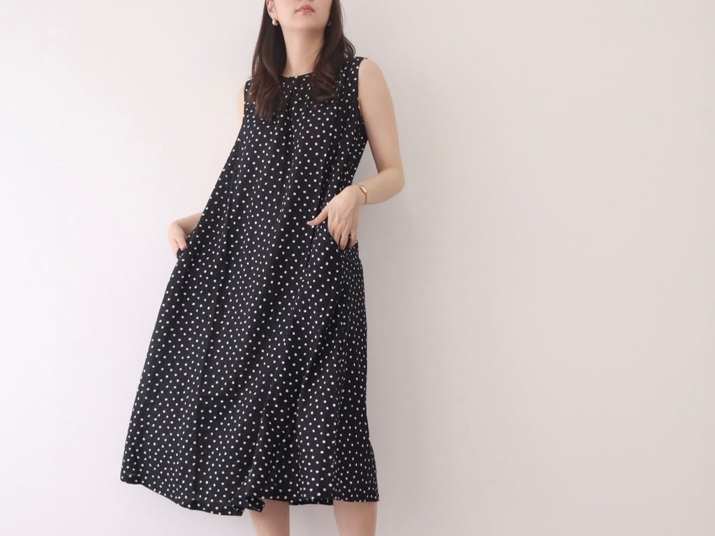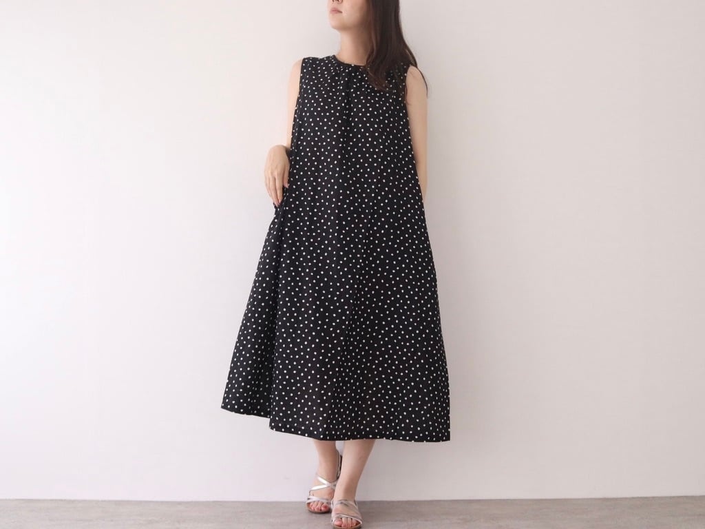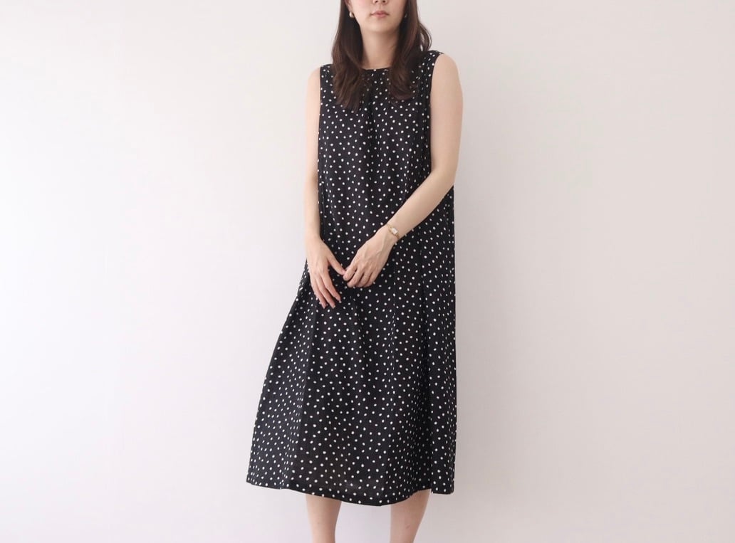 ふんわり水玉ガーゼ ノースリーブワンピ No.224